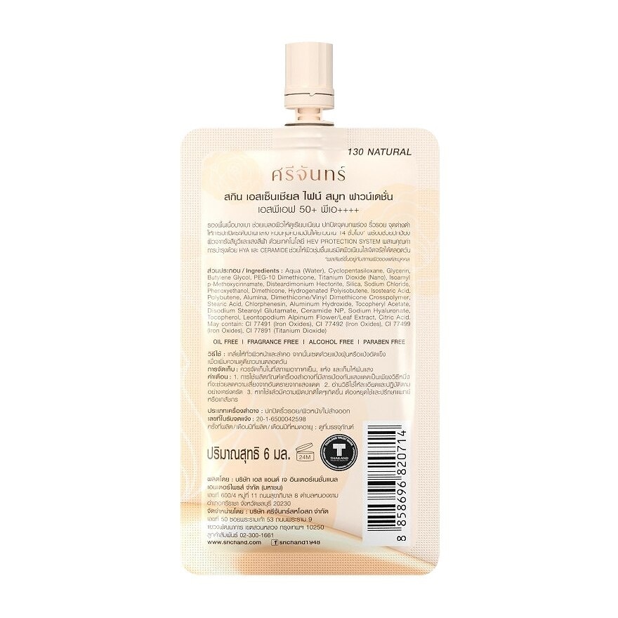 SRICHAND Skin Essential Fine Smooth Foundation SPF50+ PA++++ Light weight foundation reveals natural look Easy to blend and apply upon a face Blur and conceal fine lines and blemishes with medium coverage Oil control is up 14 Hours duration Double skin protection from UVA — UVB SPF50+ PA++++ and blue light with HIGH ENERGY VISIBLE HEV PROTECTION SYSTEM technology Integrated with HYA — CERAMIDE to fill and lock moistures into skin also protect skin from pollution This will make your face skin smooth and bright for all day long