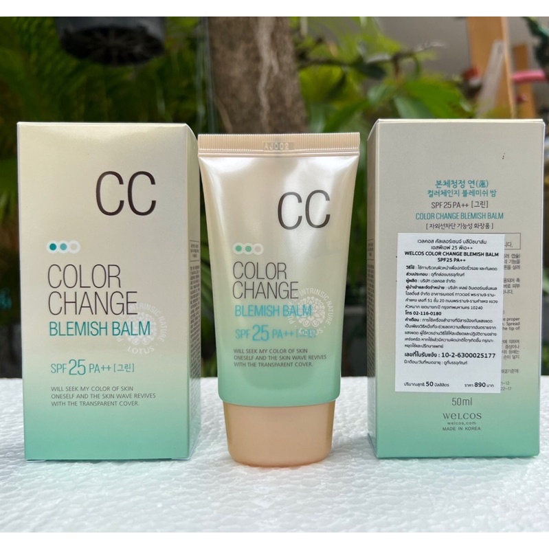 СС крем Welcos Lotus Color Change Blemish Balm с белой легкой текстурой, которая обладает способностью идеально подстраиваться под тон кожи.