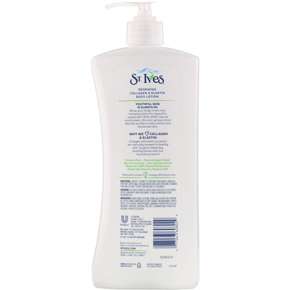 St. Ives, восстанавливающий лосьон для тела, коллаген и эластин, 621 мл (21 жидк. унция)