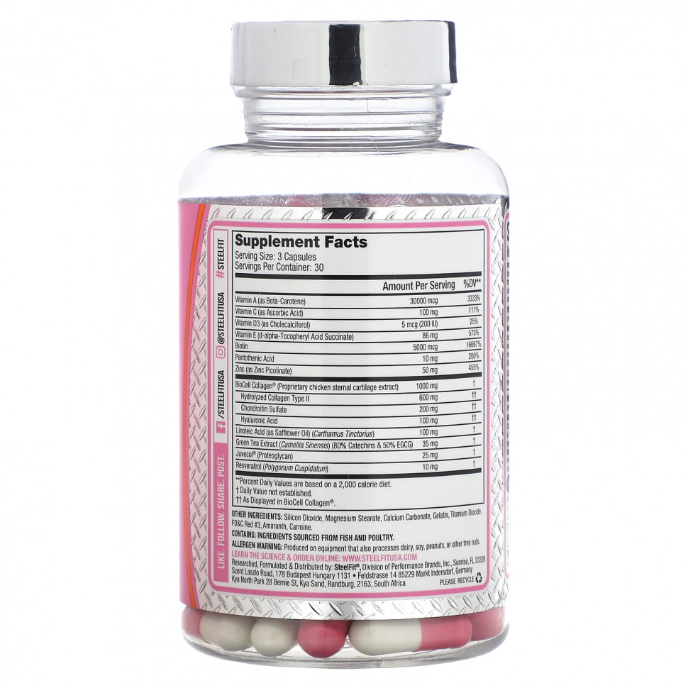 Сохраните молодой вид кожи, сделайте волосы здоровыми, блестящими, а ногти — сильными и красивыми с помощью Steel Beauty ™. В состав продукта входят клинические дозы самых передовых, проверенных исследованиями, запатентованных ингредиентов, которые, как известно, способствуют синтезу коллагена, увлажняют кожу, уменьшают морщины и мелкие морщинки, укрепляют волосы, снижают окислительный стресс и поддерживают здоровье клеток и тканей.