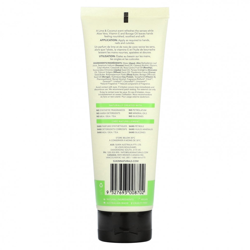 Аромат лайма и кокоса освежает чувства, в то время как алоэ вера, витамин Е и масло бурачника дарит рукам ощущение питания, успокоения и мягкости.