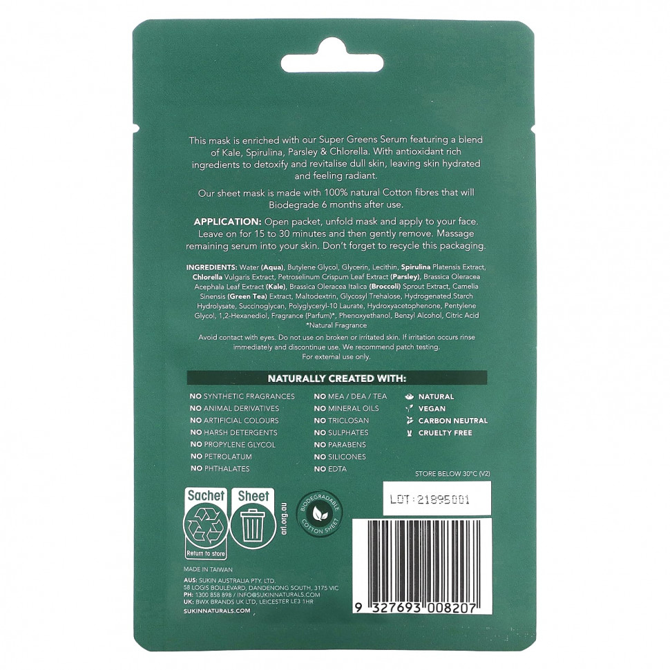 Эта маска обогащена нашей сывороткой Super Greens, в состав которой входит смесь капусты, спирулины, петрушки и хлореллы. С богатыми антиоксидантами ингредиентами для детоксикации и восстановления тусклой кожи, увлажнения и сияния.