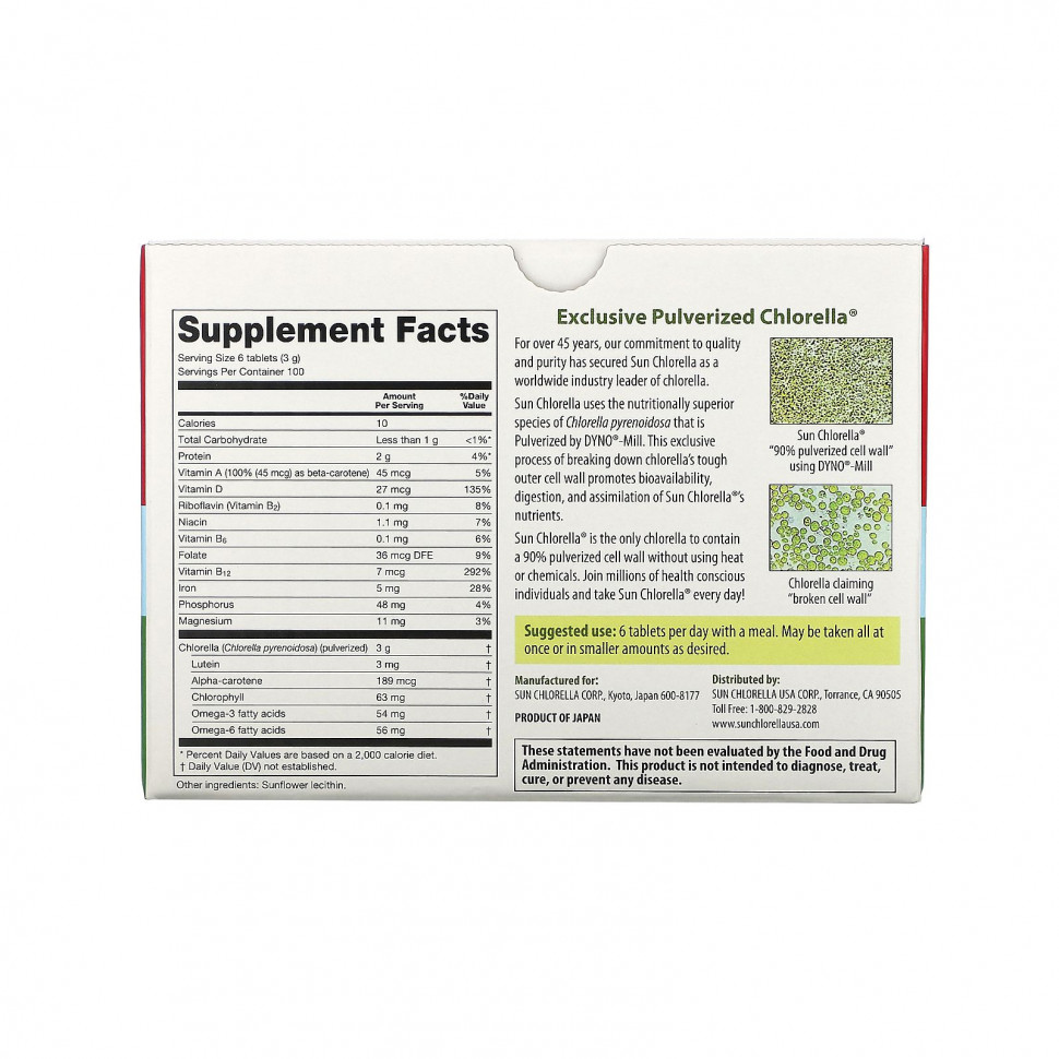 Sun Chlorella® — это единственная хлорелла на рынке, в которой содержится 95% клеточных стенок, перемолотых в порошок без использования нагревания и химикатов. Присоединяйтесь к миллионам людей, которые заботятся о своем здоровье и ежедневно принимают Sun Chlorella!