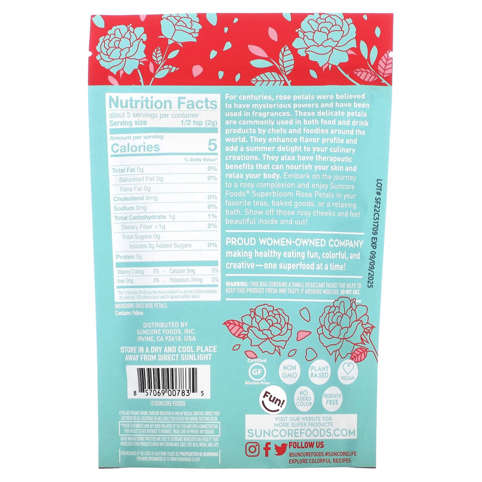 На протяжении веков считалось, что лепестки роз обладают загадочной силой и использовались в ароматах. Эти нежные лепестки обычно используются как в еде, так и в напитках поварами и гурманами по всему миру. Они улучшают вкусовые качества и добавляют летнего наслаждения вашим кулинарным творениям. Они также обладают терапевтическими свойствами, питая кожу и расслабляя тело. Отправьтесь в путь к румяному цвету лица и наслаждайтесь лепестками роз Suncore Foods® в любимом чае, выпечке или в расслабляющей ванне. Покажите свои румяные щеки и почувствуйте себя красивой внутри и снаружи!