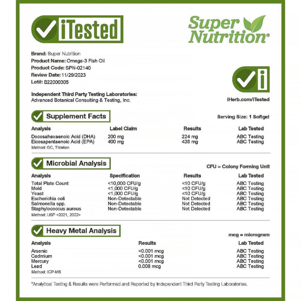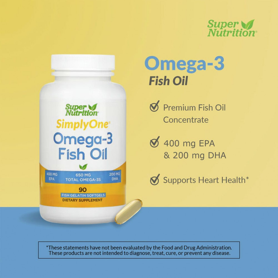 Рыбий жир с омега-3 от Super Nutrition производится на основе концентрата рыбьего жира премиального качества и содержит ЭПК и ДГК в капсулах из рыбьего желатина. Одна упаковка рассчитана на прием в течение примерно 3 месяцев (при соблюдении рекомендованной дозы).
