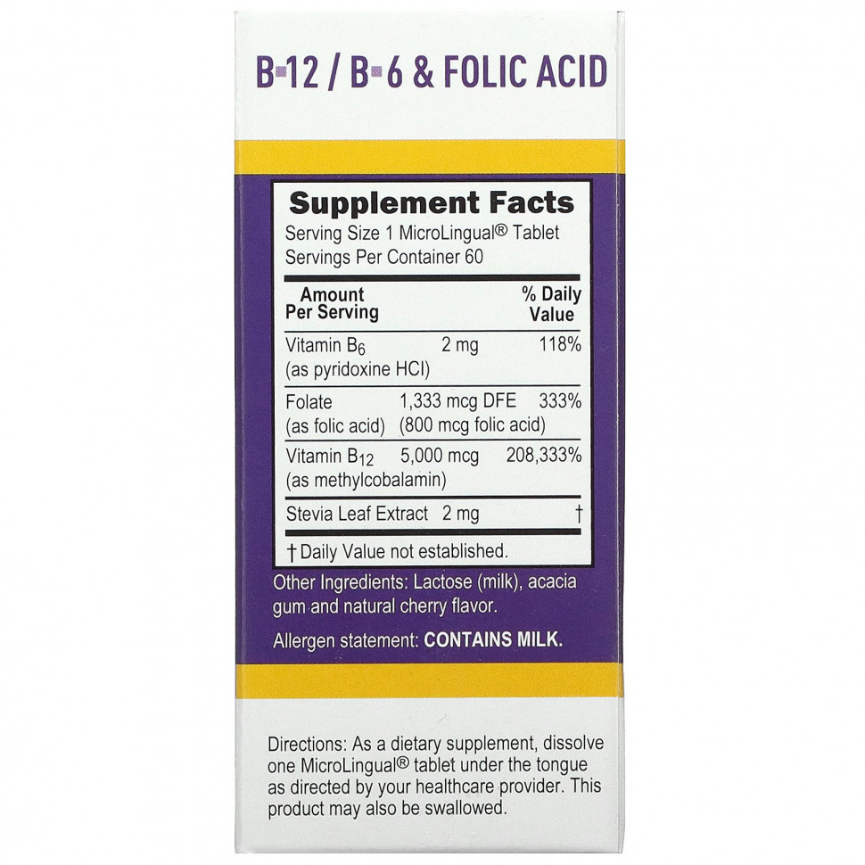 Таблетки MicroLingual®, содержащие метилкобаламин NO SHOT B-12, витамин B6 и фолиевую кислоту, помещенные под язык, быстро начинают действовать. При приеме витамина B 12 другими способами может быть потеряно до 50% активности витамина B12 в желудочной среде, для которой характерна высокая кислотность. Комбинация витамина B12, витамина B6 и фолиевой кислоты действует синергетически, поддерживая здоровую работу сердца и обеспечивая необходимые питательные вещества для сердечно-сосудистой системы.