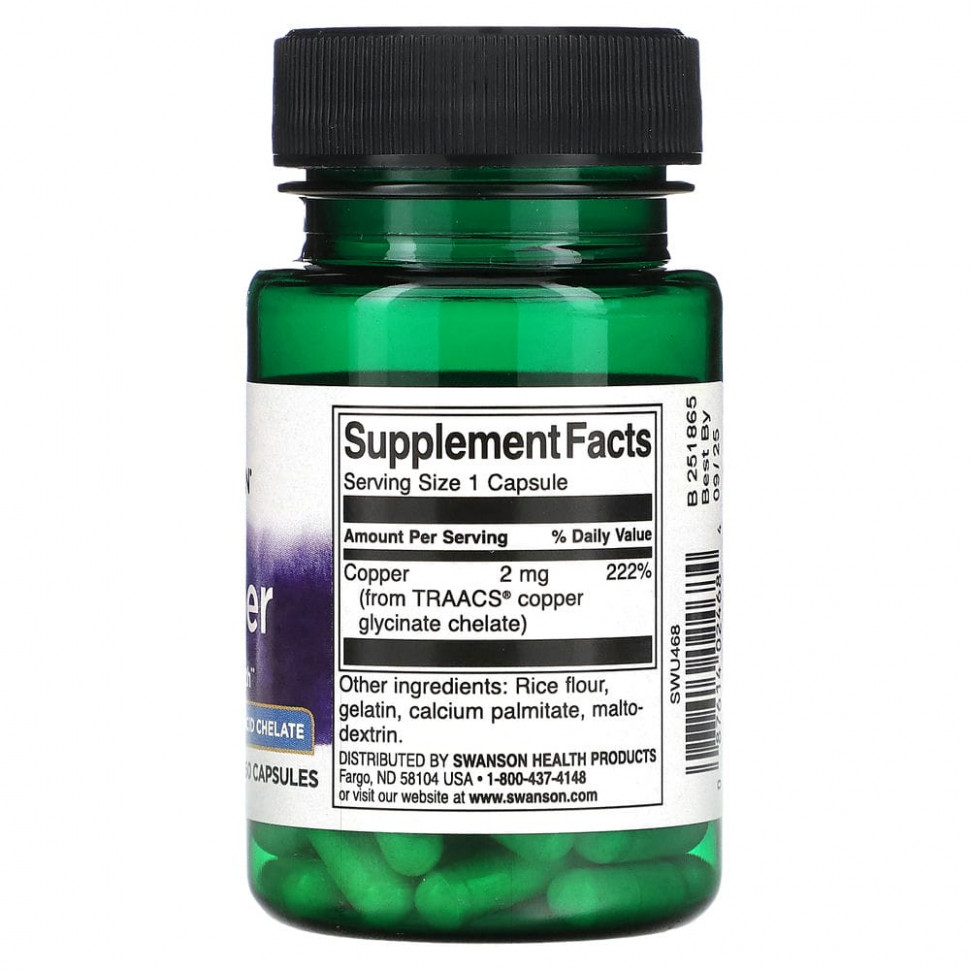 Медь (из хелата глицината меди TRAACS®) | 2 мг | 222% |