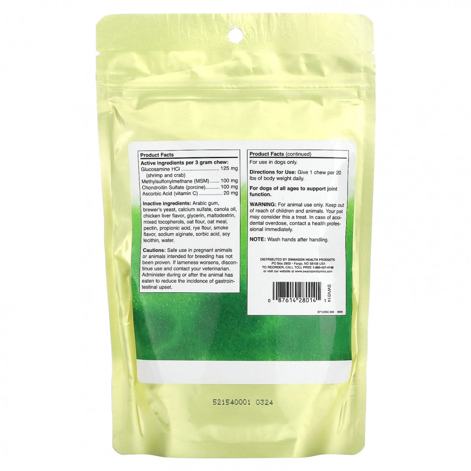 Сохраняйте бодрость в ногу с Фидо! Разработанный специально для питания тканей суставов и поддержания подвижности у активных собак, добавка для бедер и суставов с МСМ от Swanson Pet Nutrition сочетает глюкозамин, хондроитин, МСМ и витамин С во вкусной куриной печени и мягких жевательных таблетках со вкусом дыма, которые обязательно понравятся вашей собаке. Они — отличный способ поддержать здоровье суставов вашей собаки, чтобы поддерживать уровень активности в молодом возрасте в любом возрасте.