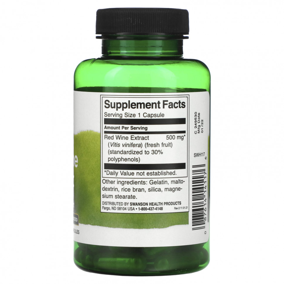 Экстракт красного вина (vitis vinifera) (свежие фрукты) (стандартизированный до 30% полифенолов) | 500 мг | * |