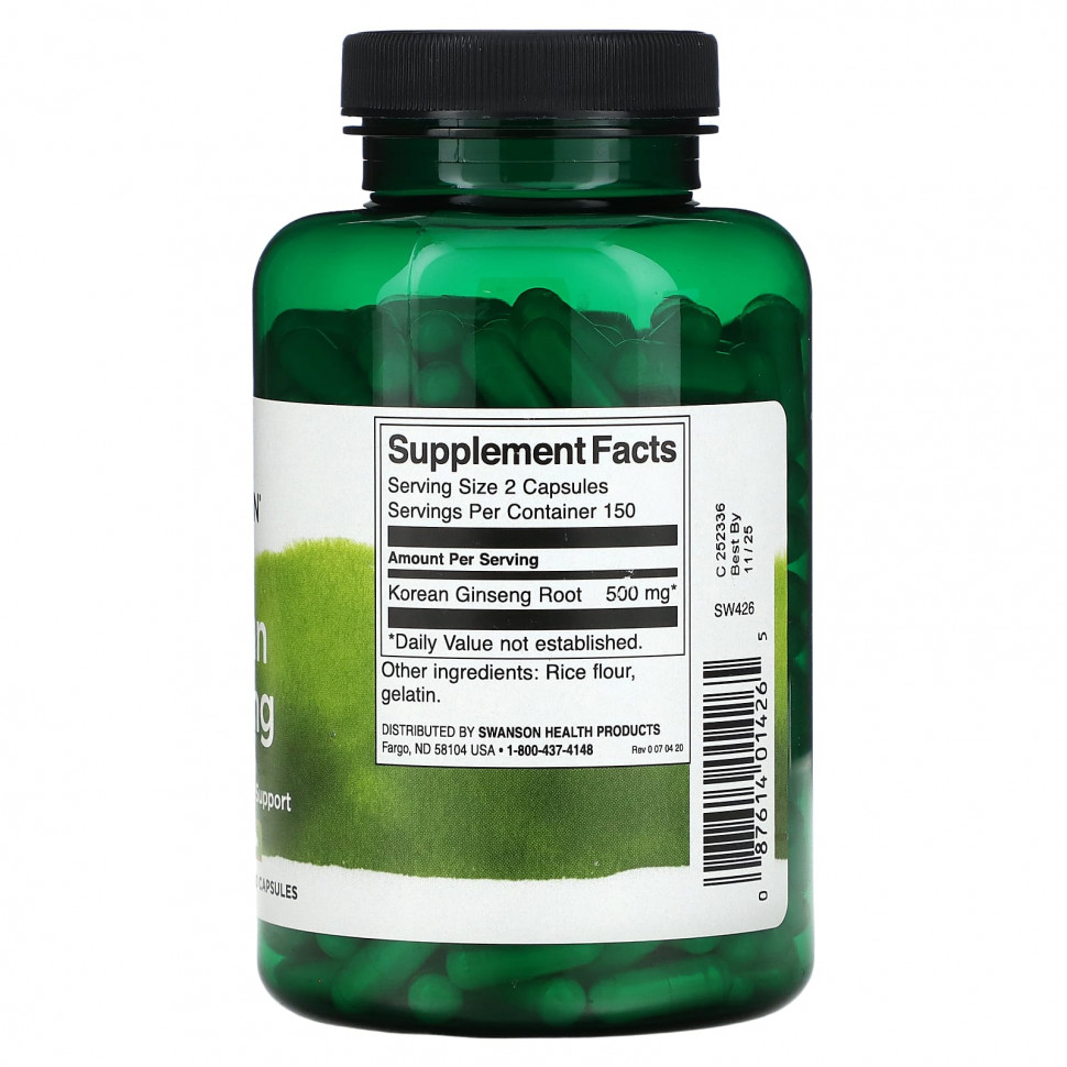 Травяной ответ для стрессовых дней! Корейский женьшень Swanson, используемый на протяжении тысяч лет в Корее и Китае для улучшения общего самочувствия, известен во всем мире благодаря своей способности заряжать энергией тело и разум во время тяжелых стрессов. Каждая капсула содержит 250 мг чистого корня корейского женьшеня, который поможет вам подготовиться к ежедневным испытаниям.