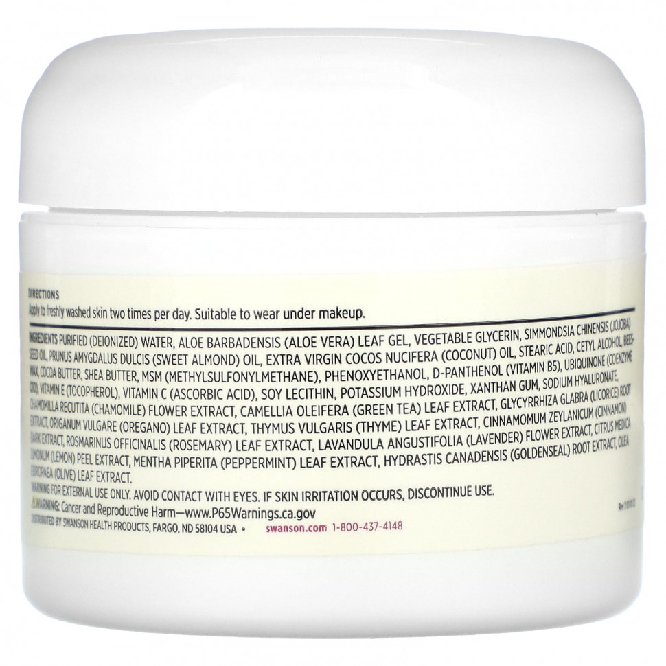 Увлажняющая, омолаживающая смесь травяных экстрактов, разработанная для защиты от видимых признаков старения, крем Swanson Premium CoQ10 сочетает в себе коэнзим Q10, МСМ и алоэ вера с витаминами C и E, а также экстрактами ромашки, зеленого чая и корня солодки.