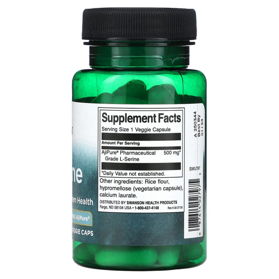 Swanson, L-серин, 500 мг, 60 растительных капсул