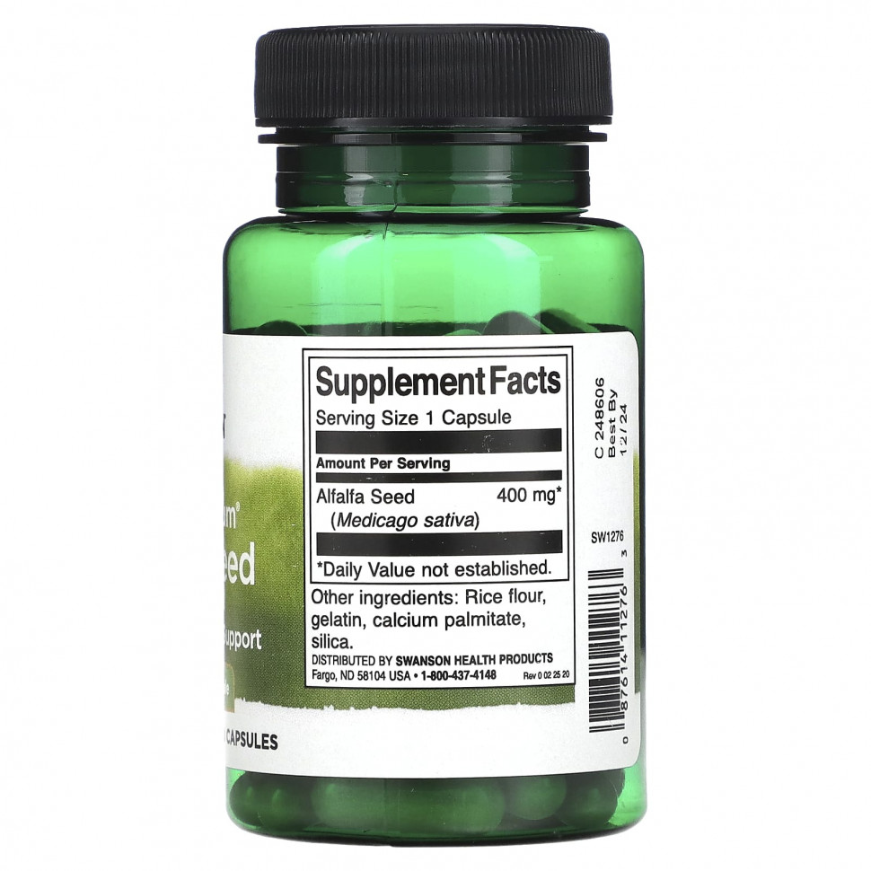 Люцерна способствует общему здоровью, поскольку может поддерживать здоровый липидный и углеводный обмен. Многие заваривают чай из люцерны, но капсулы с семенами люцерны Swanson Full Spectrum делают прием этого растения простым и удобным. Люцерна — одна из древнейших возделываемых культур на протяжении веков. Люцерна используется для различных целей почти на каждой стадии развития, от семян до ростков и листьев.