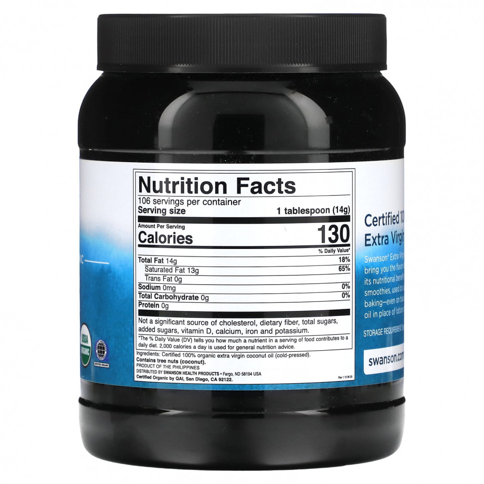 Кокосовое масло холодного отжима Swanson® подвергается минимальной обработке для получения вкуса и аромата свежих кокосов, сохраняя при этом свои питательные свойства. Это универсальное масло можно добавлять в смузи, использовать для обжаривания овощей или в качестве заменителя масла при выпечке, даже в тостах! Возьмите его с кухни и используйте кокосовое масло вместо лосьона или крема для бритья.