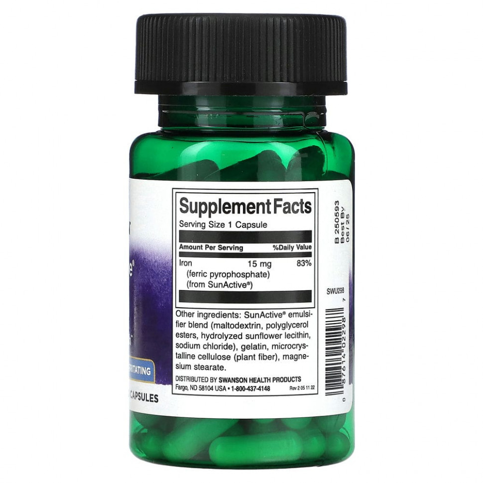 Если обычные добавки железа не подходят для желудка, пора попробовать нераздражающее железо Swanson Ultra SunActive. Как важнейший компонент гемоглобина, доставляющего кислород к нашим клеткам, железо необходимо для поддержания уровня энергии и жизнеспособности. Но у многих обычные добавки железа могут вызывать дискомфорт, особенно в желудке и желудочно-кишечном тракте. Вот тогда и может помочь SunActive. Эта революционная добавка железа содержит пирофосфат железа, форму железа с высокой биодоступностью, которая мягко воздействует на желудок и желудочно-кишечный тракт, что делает ее идеальной для людей, которым трудно переносить обычные добавки с железом. Микроинкапсулировано для обеспечения оптимальной стабильности. SunActive — одна из самых мягких и эффективных добавок, содержащих железо.