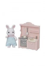 Snow Rabbit Dad Cooking Set with Mini Kitchen and Various Cooking Utensils. Includes a pastel pink kitchen set with a sink, oven, plates and other kitchen utensils. You can be played alone. Also, We recommend the Snow Rabbit Dad Cooking Set compatible with other figures, houses and furniture (sold separately) for more creative and fun play!