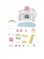 The SYLVANIAN FAMILIES Sunny Castle Nursery set contains a nursery with changeable weather and the Flora Rabbit Baby. The nursery comes with all kinds of fun things, including a piano, swing, slide and cradle. Change the weather outside the window, by moving the lever, it can be sunny, rainy or nighttime! Play games suited to the weather or make the sun rise! The drawing board and table change into fun playground equipment for the babies.