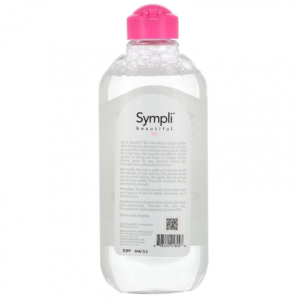 Универсальная мицеллярная очищающая вода Sympli ™ Beautiful позволяет легко удалить макияж, загрязнения и кожные выделения за один прием без резкого трения и обезвоживания кожи. Это эффективное очищающее средство, не содержащее мыла, отлично подходит для всех типов кожи, не требует смывания и не оставляет следов. Мицеллы мягко удаляют загрязнения, оставляя кожу безупречно чистой и восхитительно обновленной.