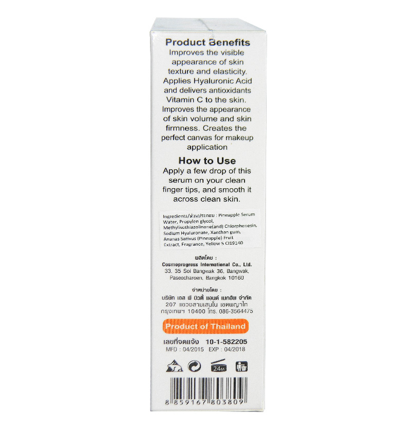 Масляная вытяжка ананаса прекрасно выравнивает цвет лица и освежает кожу, обладает приятным запахом и обеспечивает витаминный уход за кожей на лице.