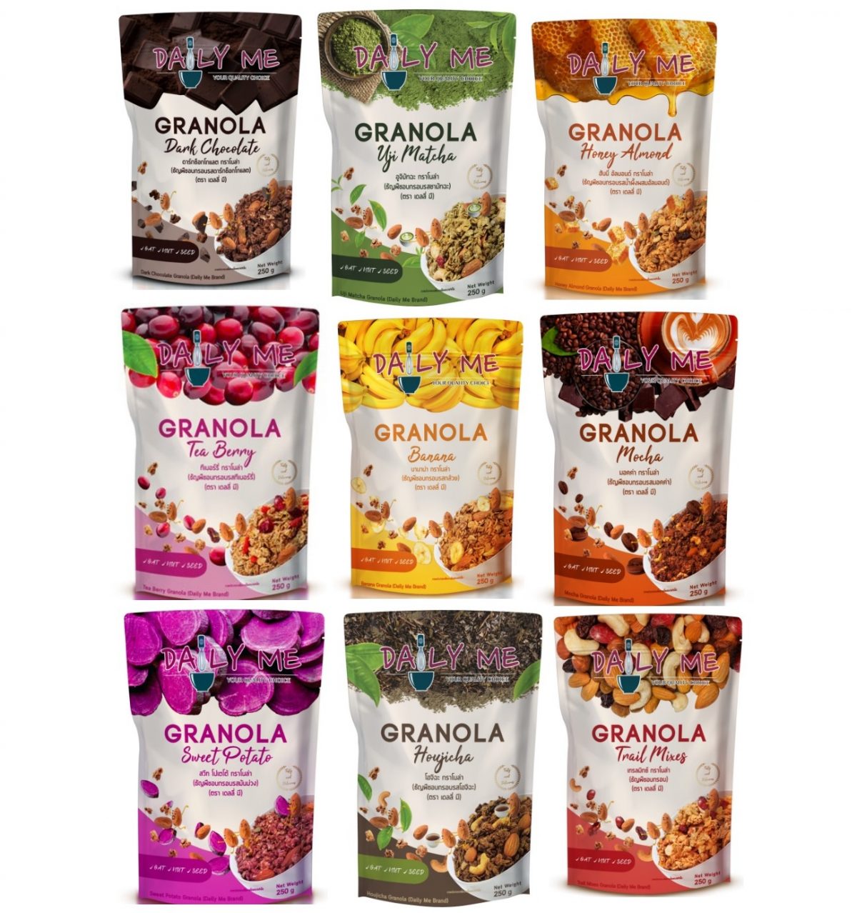 Популярная тайская гранола от Daily Me. Вес упаковки 250 гр. Доступен в 9 вкусах: