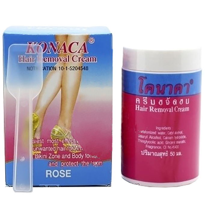 Популярный в Таиланде крем для депиляции Konaca для легкого и эффективного удаления волос с кожи рук, ног, области подмышек и зоны бикини. При регулярном использовании депиляционного крема Конака волосы на месте применения крема истончаются, и со временем приостанавливается рост нежелательных волос.