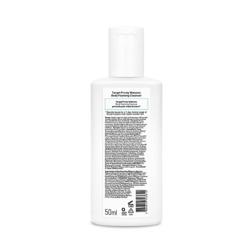Target Pro by Watsons Body Foaming Cleanser 50ml (Trial Size) reinforced skin barrier with just 1 wash. This non drying formula efficiently yet gently removes oil and dirt from your skin, thoroughly cleanses without leaving skin stripped or tight. Our formulation ensures a body care experience that speaks to the essences of purity