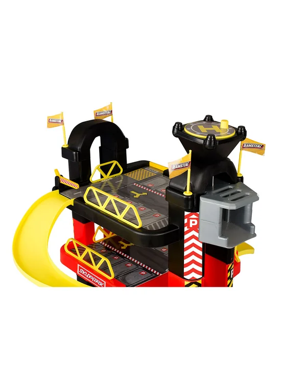 5 Level Tower Garage From the brand TEAMSTERZ 5 level garage playset features a helipad, fuel pumps, barriers, parking bays and working car lift with a tip launcher to send each car off through the level and down the connecting ramp.