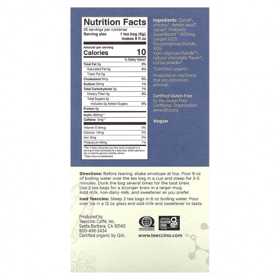 Ваниль | 20 шт. ,Лимон и жасмин | 20 шт. ,Мята | 20 шт. ,Персик | 20 шт. ,травяной чай/ без кофеина/ 40 чайных пакетиков/ 59 г (2/1 унции) |