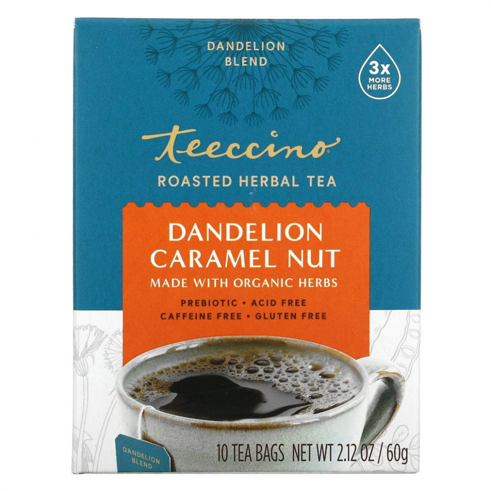 И любителям кофе, и любителям чая понравится приятный крепкий вкус Teeccino. Поклонники этого напитка считают, что вкус Teeccino более мягкий, более насыщенный и более сливочный по сравнению с кофе. В чем секрет? Французский цикорий, обжаренный корень, который часто добавляют в кофе, смешанный с одуванчиком, известной травой, которая используется для выведения токсинов, и испанским рожковым деревом, известным своим шоколадным вкусом. Входящие в состав калифорнийский миндаль, финики и инжир превращают напиток Teeccino в восхитительную чашку чая… или кофе? Попробуйте и решите сами!