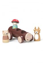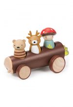 Call a taxi! Get around in style and pick up the Merrywood folks in this quirky log-shaped vehicle. Grabbing a ride today is Fungi, Robbie, and Woody.