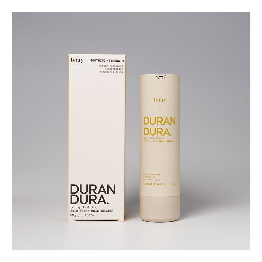 Terry Duran Dura Daily Soothing Skin Flood Moisturizer 50g Basic skincare moisturizer product with gel cream texture. It contains all moisturizing factors including humectant emollient And Occlusives Main Ingredient from Durian Extract which is packed with Short Peptides and Amino Acids function as skin nourishing and skin moisturizing Humectant and Emollient Durian Extract also functions as skin brightening and antioxidants Other Key Ingredients function as skin soothing and skin barrier supports result in skin problems reduction to longterm healthy skin
