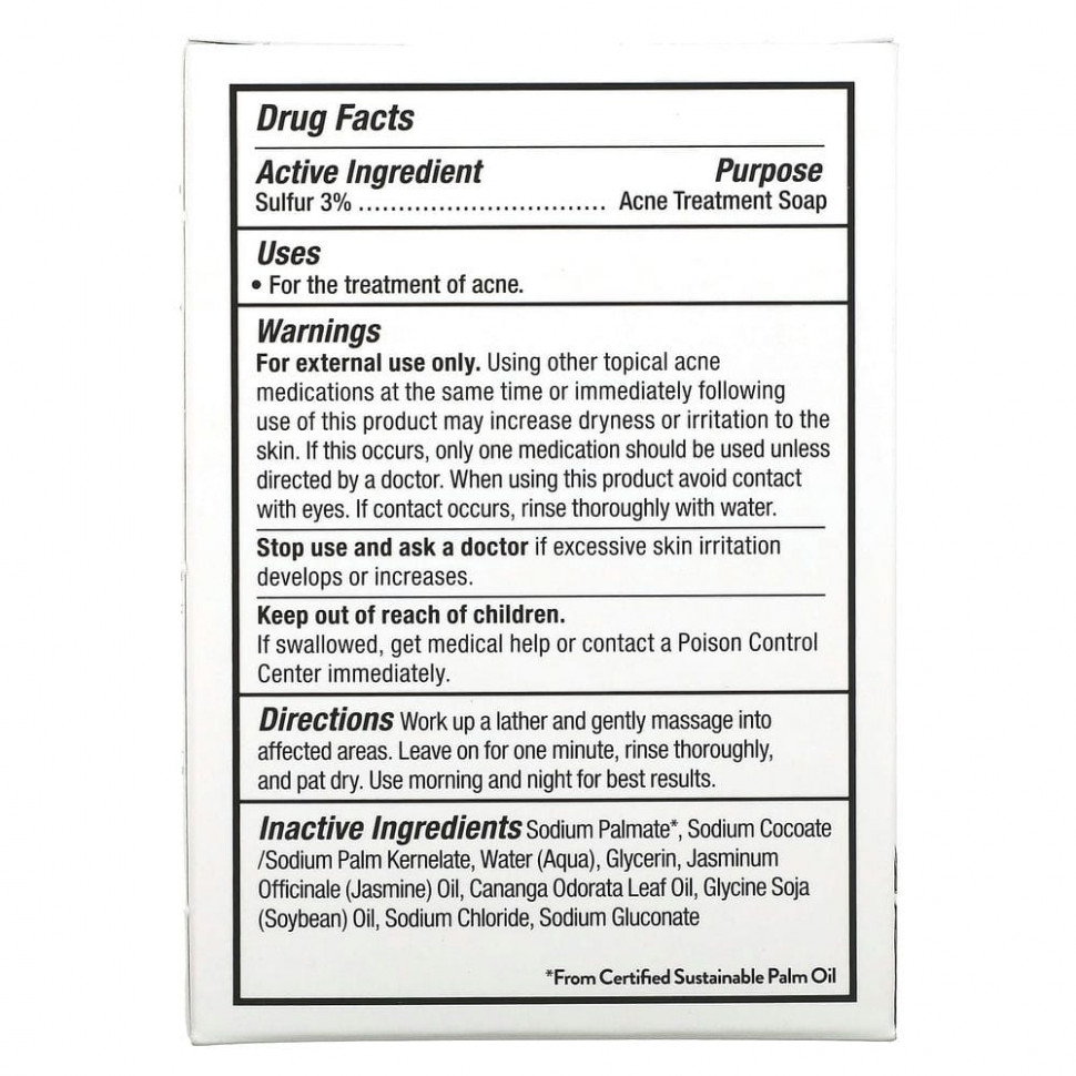 Идеально для кожи, склонной к акне и воспалению. Целебные свойства серы, содержащейся в этом мыле, помогают предотвратить и устранить прыщи, черные точки и излишний жир.