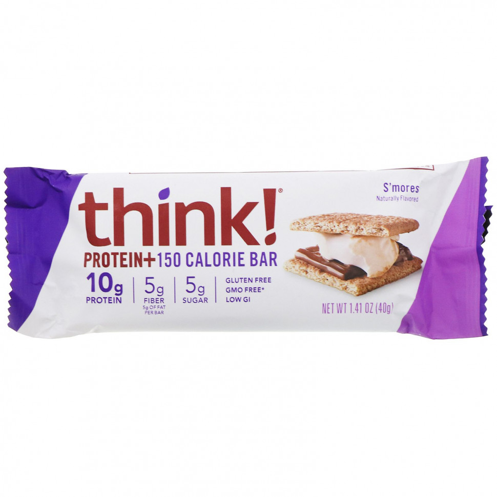 Поэтому мы подумали, почему бы вам не съесть питательную и вкусную закуску, чтобы вы чувствовали себя сытыми и довольными? Вот почему каждый батончик Think! ® Protein + 150 Calorie имеет идеальный баланс белка и клетчатки и содержит не более 5 г сахара в таких декадентских ароматизаторах, как S’mores. Этот батончик, наполненный вкусами крекера, зефира и шоколада, — восхитительный способ продолжить день. I think! I can.