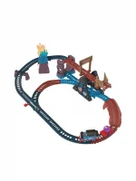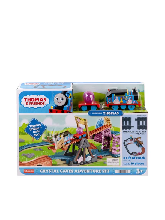 The adventurous fun from the THOMAS & FRIENDS : All Engines Go!™ episode “Mystery of Lookout Mountain” with this motorized train set featuring the No. 1 Blue Engine, Thomas! Flip the switch on top of the engine to send Thomas racing into the Crystal Caves to complete his delivery. Use the track switch to send Thomas either over or under the awesome tipping bridge.
