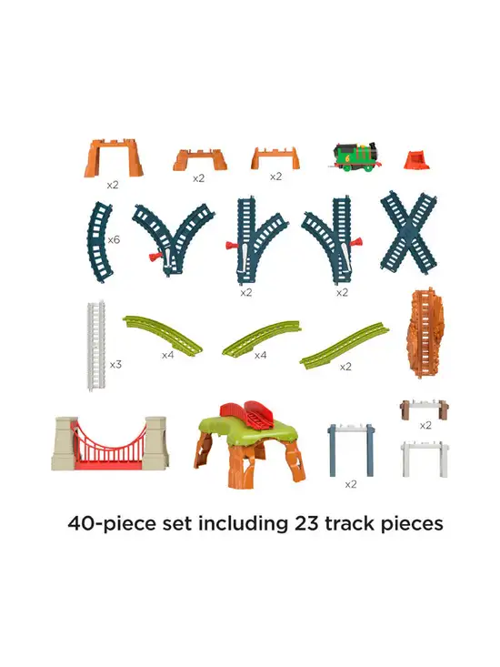 Thomas & Friends Thomas & Friends Percy 6-in-1 Set from Fisher-Price. Kids can use the track pieces to create six different layouts for hours of fun and send the motorized Percy engine racing up, down and all around the track on racing adventures! Best of all, these track pieces connect easily to other Thomas & Friends track sets for limitless railway play.