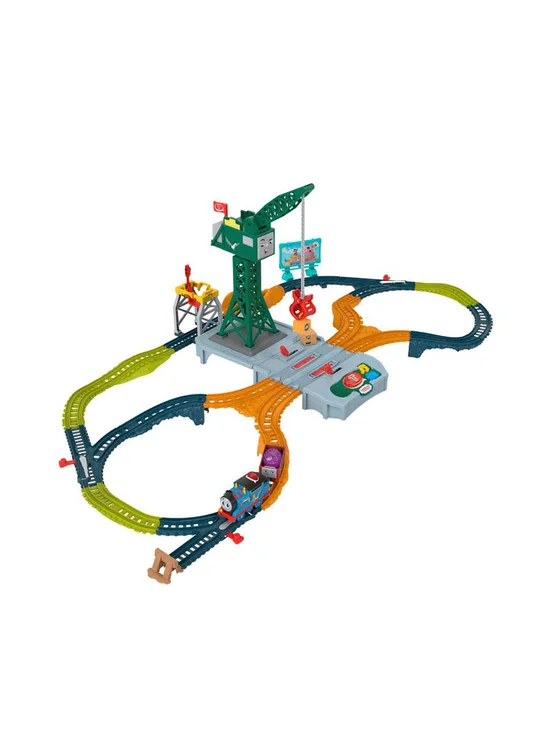 Brendam Docks comes to life like never before with this Thomas & Friends Talking Cranky Delivery Train Set from THOMAS & FRIENDS. Featuring 3 characters from the show, including Cranky the Crane, a motorized Thomas engine and a Troublesome Truck, who can recognize and talk to each other on the track, this interactive train and track set also features fun songs and sounds to enhance your child’s storytelling play. Set includes 14.5 feet of track, a kid-powered hopper, and 3 cargo pieces for fun loading and unloading action.