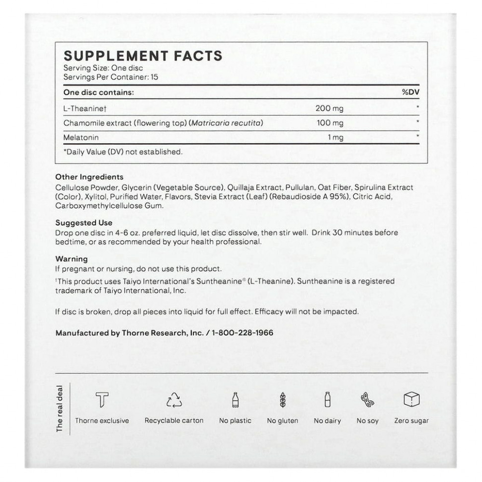 Каждый растворимый в воде диск со вкусом черники содержит расслабляющую смесь ингредиентов для крепкого сна: L-теанин, мелатонин и ромашка.