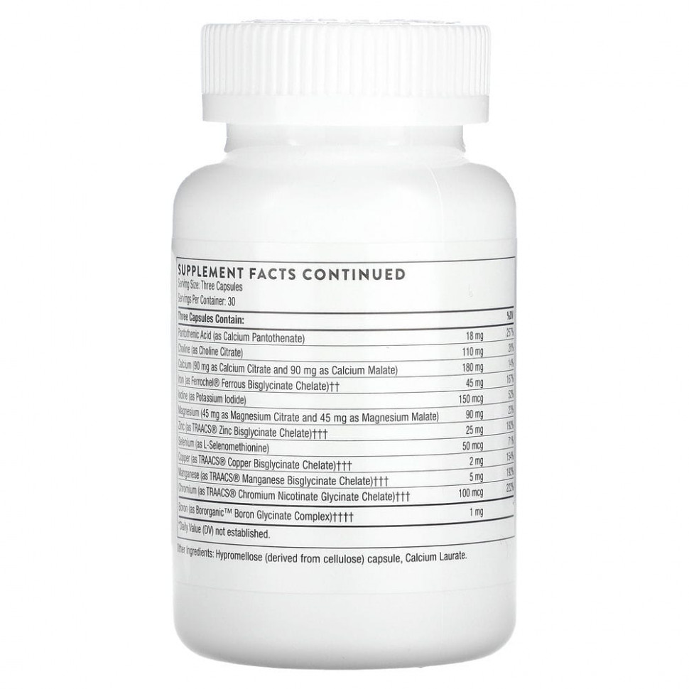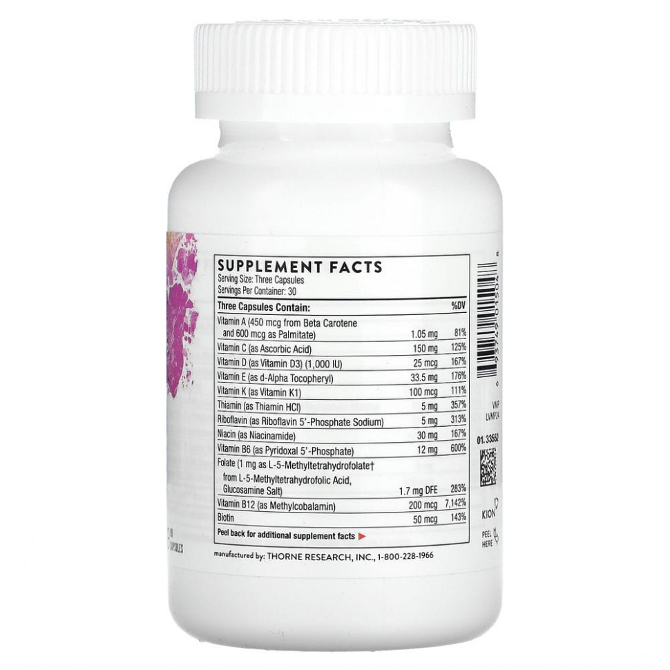 Центры по контролю и профилактике заболеваний рекомендуют прием фолиевой кислоты всем женщинам детородного возраста, так как наибольшая потребность возникает в первом триместре, когда женщина может даже не подозревать о своей беременности. Женщина, которая придерживается здорового питания и имеет достаточное количество фолиевой кислоты в организме, может снизить риск рождения ребенка с врожденным дефектом головного или спинного мозга. Женщинам иногда бывает трудно ‘переваривать’ высокоэффективные поливитаминные или минеральные пищевые добавки, особенно в первом триместре беременности. В связи с этим Thorne не содержит большого количества питательных веществ, обычно вызывающих расстройство желудка. Вместо этого питательные вещества включены в меньшем количестве, но в оптимальной форме для легкого усвоения в тканях и оптимального использования. Среди них активные формы нескольких витаминов группы B — пиридоксаль-5′-фосфат (витамин B6), рибофлавин-5′-фосфат (витамин B2), L-5-MTHF (активная форма фолата) и метилкобаламин (витамин B12). Поскольку кальций в больших количествах может вызвать расстройство желудка, используется умеренное количество в хорошо усваиваемых формах цитрата и малата. Дополнительные кальций и магний могут быть добавлены в соответствии с показаниями.