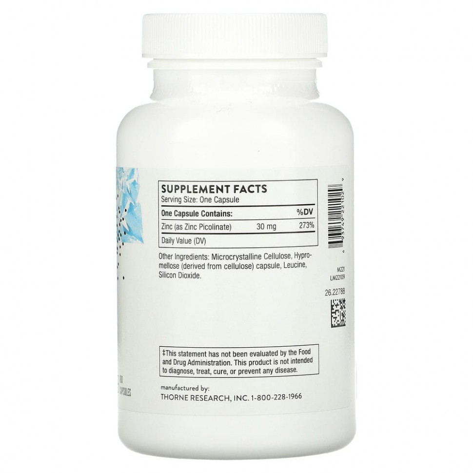 Если организм испытывает проблемы с усвоением питательного вещества, он не может воспользоваться полезными свойствами этого вещества. Thorne предлагает две легкоусвояемые формы цинка: пиколинат цинка и бисглицинат цинка. Пиколинат цинка — это цинк, связанный с органической пиколиновой кислотой, которая естественным образом вырабатывается в организме из аминокислоты L-триптофана. Бисглицинат цинка — это цинк, который связывается с двумя молекулами аминокислоты глицина, создавая настоящий хелат аминокислоты.