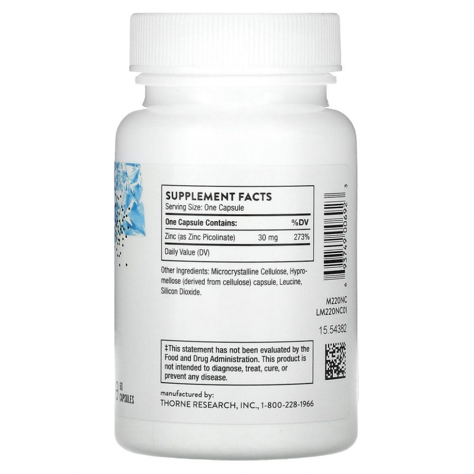 Если организм испытывает проблемы с усвоением питательного вещества, он не может получить пользу от него. Thorne предлагает две легкоусвояемые формы цинка: пиколинат цинка и бисглицинат цинка. Пиколинат цинка — это цинк, связанный с органической пиколиновой кислотой, которая естественным образом вырабатывается в организме из аминокислоты L-триптофана. Бисглицинат цинка — это цинк, который связывается с двумя молекулами аминокислоты глицина, создавая настоящий хелат аминокислоты.