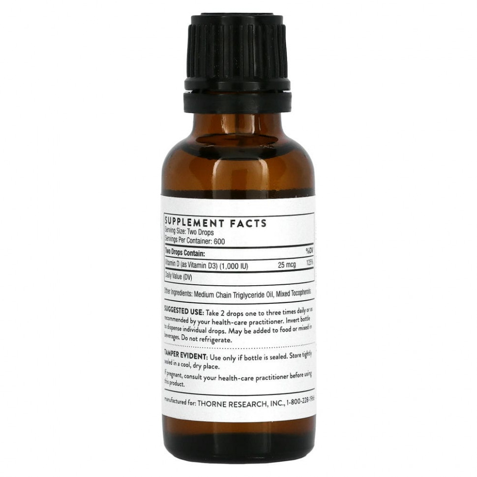 Витамин D играет важную роль на всех этапах жизни, начиная с внутриутробного развития. Он помогает обеспечить ряд важных функций организма, включая здоровье костей и мышц, сердечно-сосудистой системы и иммунной функции. Хотя прямые солнечные лучи являются хорошим источником витамина D, многие люди не получают его в достаточном количестве из-за смены сезонов, географического положения или образа жизни. Таким образом, добавка с витамином D может принести большую пользу. Жидкий витамин D от Thorne для взрослых и детей облегчает процесс его получения. Наш жидкий витамин D можно смешивать с едой или напитками. Он содержит масло среднецепочечных триглицеридов, без соевого и кунжутного масла, а в качестве консервантов служат смешанные токоферолы (натуральный витамин Е).