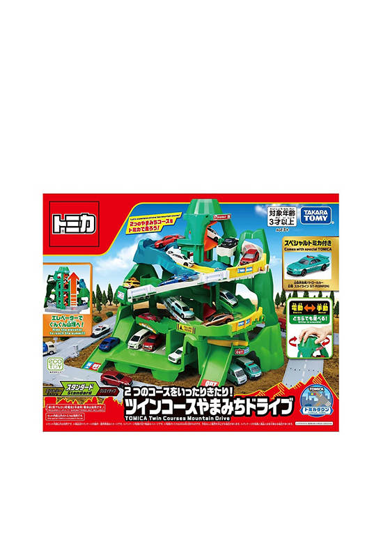 TOMICA cars go back and forth along two mountain road courses!- A spectacular mountain pass driving course!- Comes with special omica [Mountain Rescue Patrol Car Nissan Skyline GT-R (BNR34)].- Tomica climbs the double elevator and races around two mountain road courses.- The two courses are connected in a figure eight shape to create a long course where you can run lots of Tomica cars.- [Wild Road Course] is packed with action, including jump ramps and switchback slopes!- The [Highway Course] has a long, winding hill where Tomica cars race along.- There are plenty of parking spaces available, including the base parking lot and the Miharashidai area.- The elevator can be switched between electric and manual, so you can play with it without using batteries.- Easy to assemble!- The parts don’t come apart easily so cleaning up is easy!- Connect it to the separately sold [2WAY Busy Expressway (scheduled for release in autumn 2024)] to create a huge driving course!
