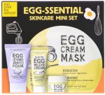 Базовый набор из 3 этапов по уходу за кожей с питательными экстрактами яиц для очищения, ухода и увлажнения, а также увлажняющим кремом для тела.