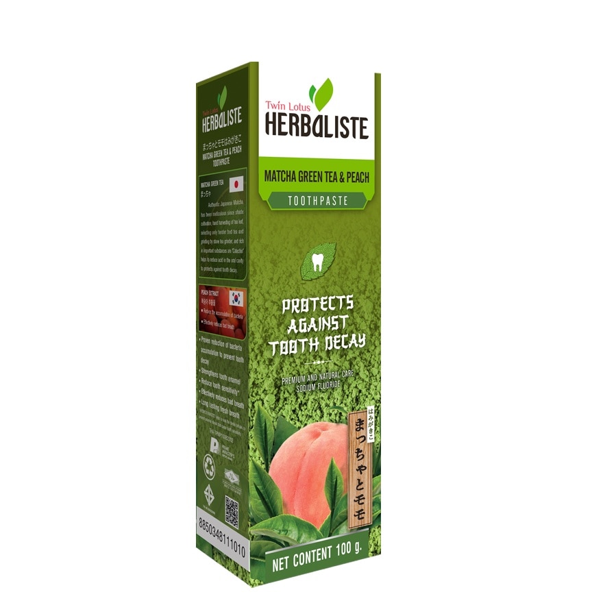 Twin Lotus Toothpaste Herbaliste Matcha Green Tea & Peach Twin Lotus Herbaliste Active Charcoal Toothpaste Herbal toothpaste that cause bad breath solution, rich concentration with natural herb, fine with black cream and herbal aroma. Malodor Suppression Technology exclusive of Twin Lotus Herbaliste enhance innovation in triple action to eliminate the cause of bad breath. The lasting fresh breath. — Herbal Malodor Suppression Technology eliminate the cause of bad breath. — Triple action to reduce the accumulation of bacteria, Plaque and bad breath. — Lasting fresh breath. — SLS Free Helps prevent tooth decay With extracts from Japanese matcha green tea Helps add calcium to strengthen teeth. Fresh breath.