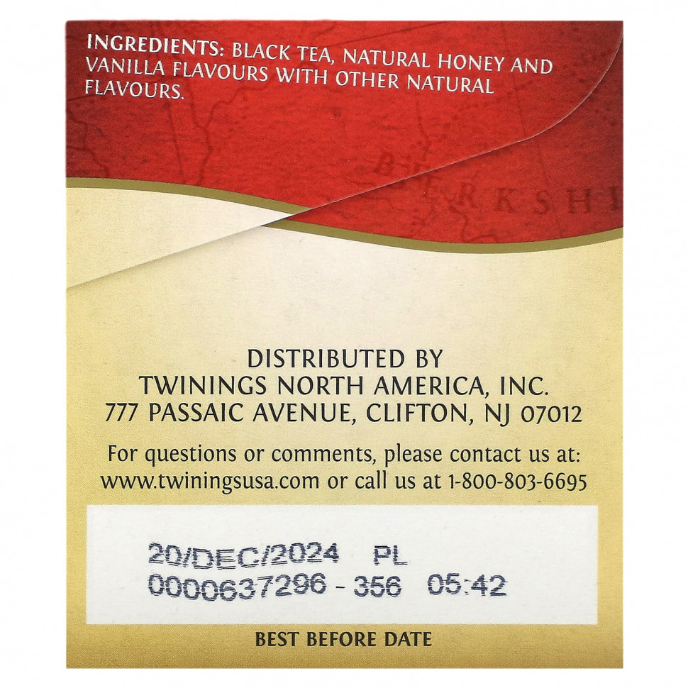 Черный чай, натуральные медовые и ванильные ароматизаторы с другими натуральными ароматизаторами.