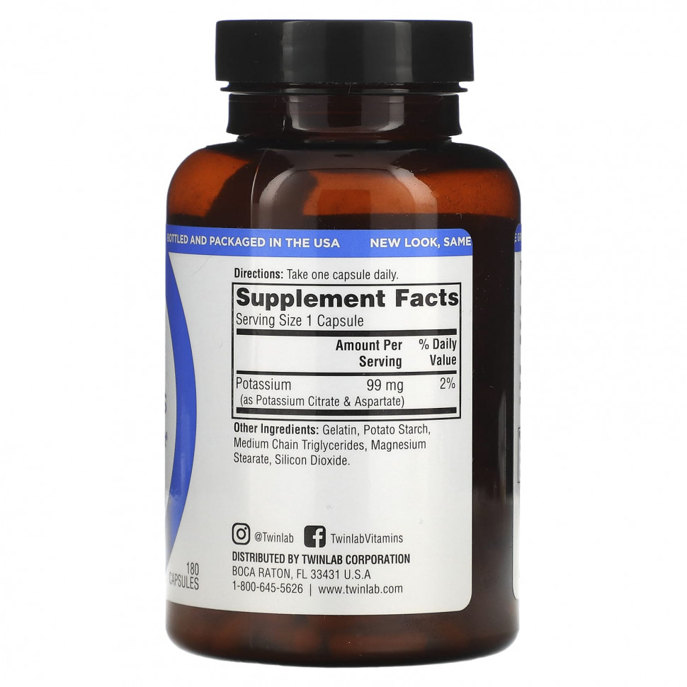 Капсулы для калия Twinlab® содержат 99 мг калия из цитрата калия и аспартата калия. Калий, являющийся электролитом, поддерживает нормальную работу всех клеток, органов и тканей организма. Он способствует здоровой сердечной деятельности, а также здоровью скелета и сокращению гладких мышц, что делает его важным для нормальной работы мышц и пищеварительной системы.