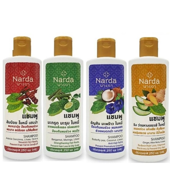 Силу волос от корней до кончиков обеспечит тайский шампунь Narda! С ним мытье головы превращается в расслабляющую спа-процедуру, в ходе которой Вы физически ощущаете, как вся усталость, негативные эмоции и раздражение утекают в сливное отверстие вместе с грязной водой! Уже после первого использования шампуня волосы радуют живым блеском, мягкостью и объемом, они более послушные, легкие и сильные! Регулярное применение помогает нормализовать обменные процессы в коже головы, избавиться от перхоти, зуда, бактерий, «разбудить» луковицы, запустив процессы роста локонов!
