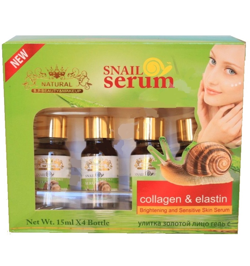 Тайская сыворотка с экстрактом слизи улиток используется для избавления от рубцов, угревой сыпи, возрастных пятен, мимических морщин, излишней чувствительности и воспалений кожи.
