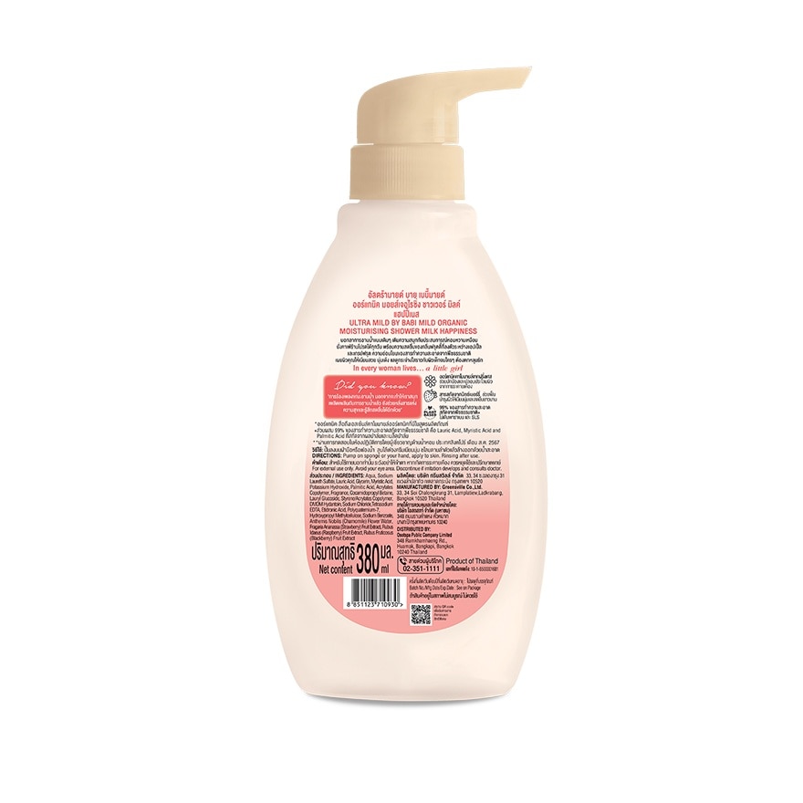 Babi Mild Ultra Mild Organic Shower Milk Happiness Guarantee mildness from no.1 bestselling brand in baby liquid soap Babi Mild Ultra Mild Organic Shower Milk purifies your skin with Hybrid cleanser (Plant based soap based surfactant) formulation but mild to skin to ensure your skin is thoroughly cleansed yet still feels soft and alive, not dry and tired. Enriched only with only goodness to revitalizes your skin to give you that baby skin glow you love. With the scent for refreshing from fruit pear, apple and lily