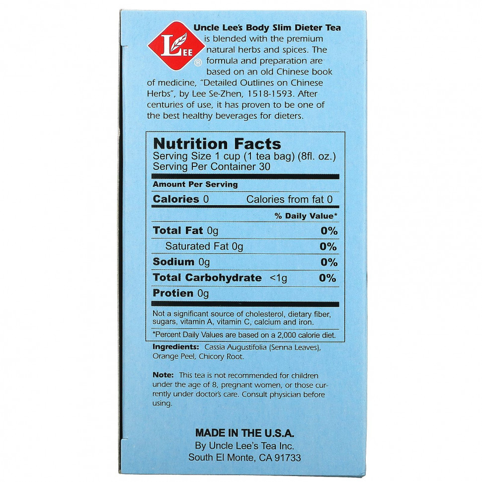 Диетический чай для стройного тела Uncle Lee’s Tea содержит натуральные травы и специи премиального качества. Формула и способ приготовления основаны на старой китайской книге о медицине «Подробные характеристики китайских трав» Ли Се Чжэня, написанной в 1518–1593 гг. Спустя столетия употребления он остается одним из лучших здоровых напитков для людей, соблюдающих диету.